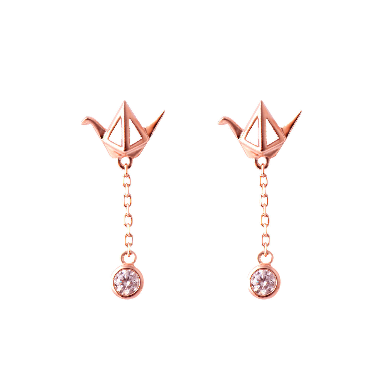 Delicate three-dimensional paper crane earrings in sterling silver, rose gold inlaid with dazzling sparkling zircons, light and elegant in design, bringing out a delicate and feminine girlish temperament yearning for freedom, with an irresistible charm.