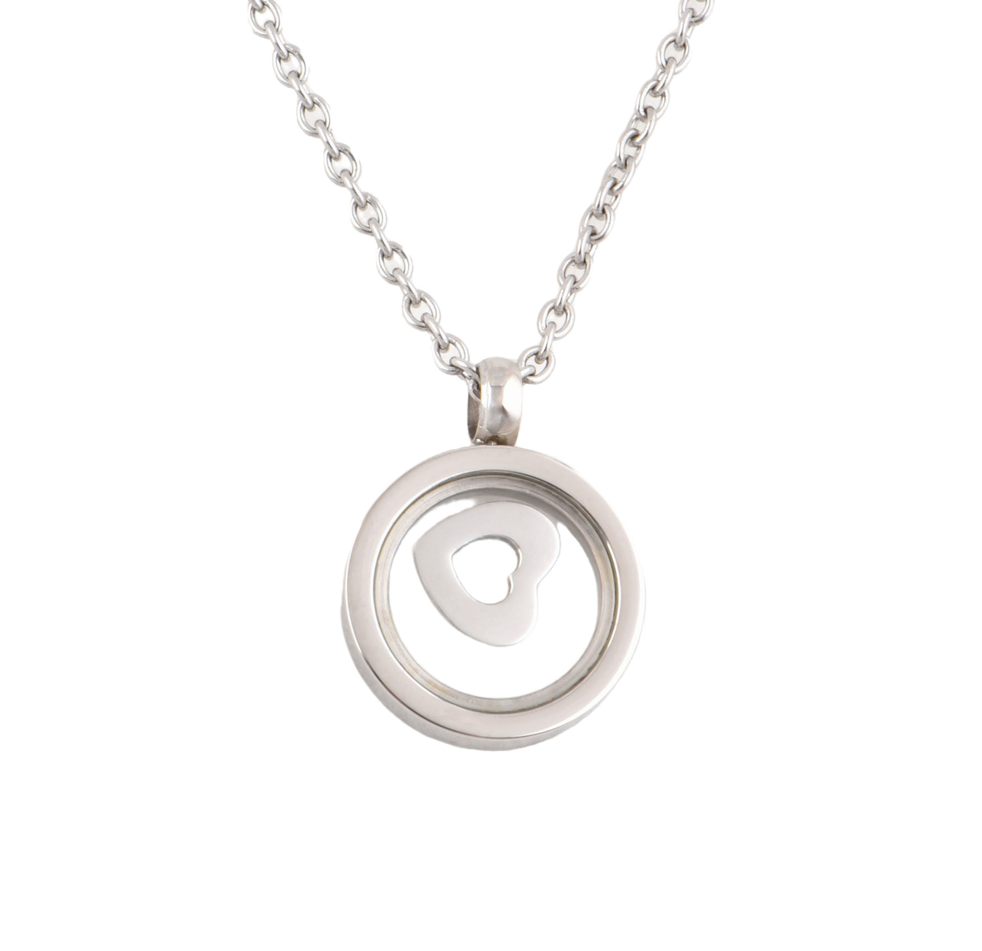 JM Moving Heart Stainless Steel Pendant Necklace.