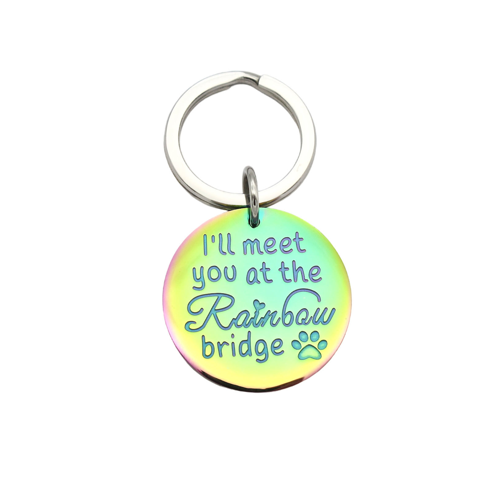 This design is based on the theme of the Rainbow Bridge to commemorate the lost pets. The Rainbow Bridge symbolizes the bridge for pets to travel to heaven after death, offering comfort and peace. With a pet name tag, you can hold the memory of your beloved pet forever, and let the colorful clouds on the top of the Rainbow Bridge shine on the sunshine in your heart.