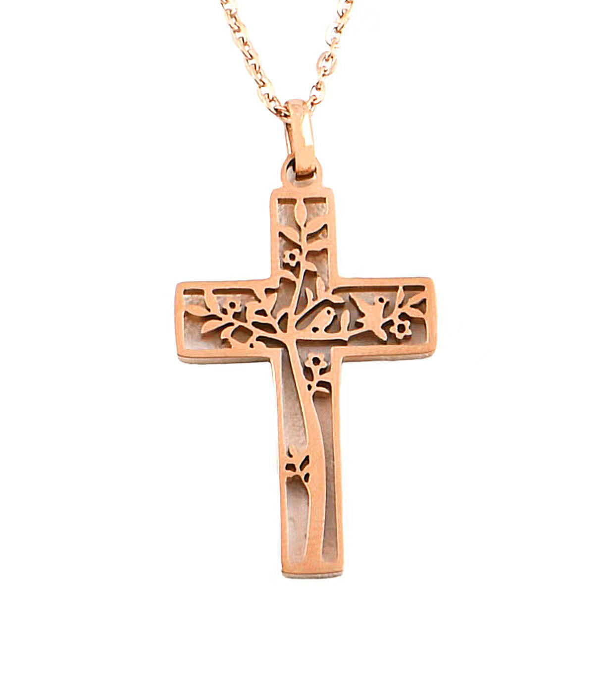 This cross pendant is a symbol of sacrifice and hope, while the engraved tree of life represents abundant life and blessings.